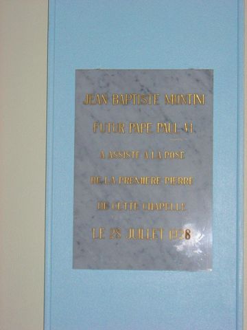 pierre de cette chapelle le 28 juillet 1926, sera scellée dans le mur,