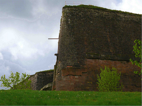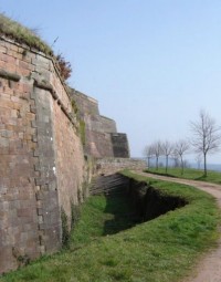 comporte un ouvrage à corne, complété par un balcon, qui se situe en contrebas.