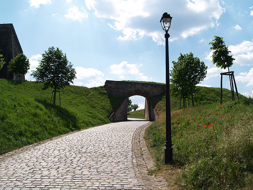 - Une rampe dénudée - menant à l'entrée principle du fort - qui place les