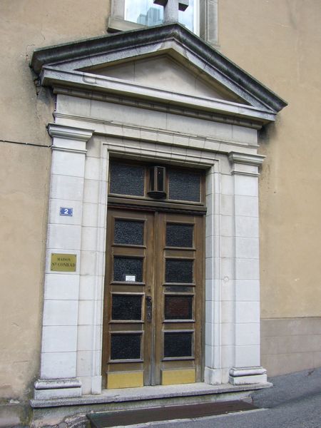 L'actuelle maison diocésaine Saint-Conrad est située au cœur de la cité bitchoise et à proximité immédiate de l'ancien couvent des Capucins. Avec lui, elle a formé pendant plusieurs décennies l'ancien collège Saint-Augustin, vénérable institution qui déménage dans un bâtiment neuf après la première guerre mondiale, à l'extérieur de la ville.