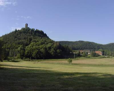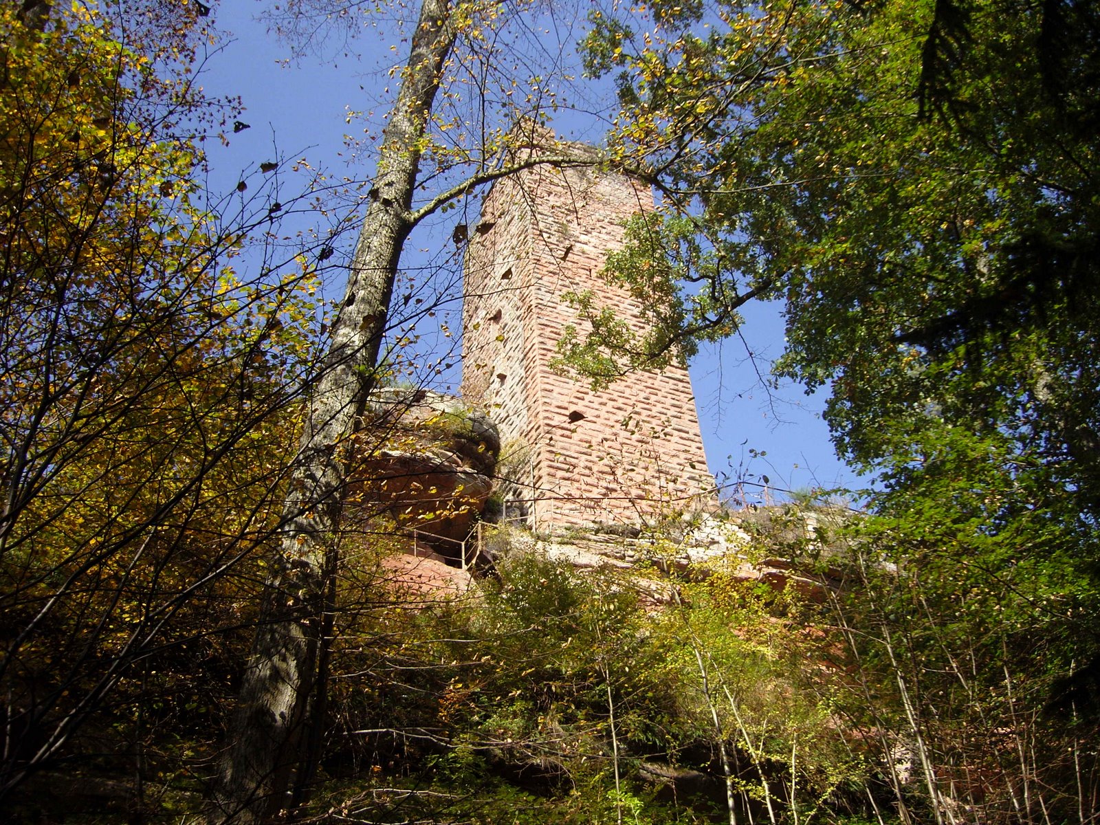 Dominant le hameau, situé à l'est, le château occupe un éperon gréseux qui émerge de la forêt. Il comprenait, jusqu'au XIXe siècle, deux hautes tours de plan carré. Celle au nord a été détruite par la foudre au XIXe siècle. Celle au sud, restaurée en 1900 par la section locale du Club vosgien, est construite en appareil régulier de grès à bossages et a conservé son crénelage. Le château est classé monument historique depuis le 16 février 1930 et l'accès aux ruines est interdit depuis 1999, pour manque de sécurité. Du côté est, en contrebas de la tour à laquelle on accédait par une échelle mobile, subsistent les vestiges de la basse-cour, dont l'enceinte est encore visible. À l'extrémité nord de la plate-forme, une grande pièce souterraine à pilier central, a été creusée dans le rocher. On peut également observer la tour carrée en pierres à bossage ainsi que la citerne. On a du château une vue imprenable sur la vallée de l'Erbsenthal et le proche étang de Hanau.