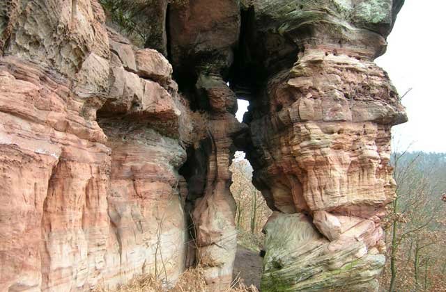 En bordure de la grande rue du village, le calvaire appelé localement croix Keller, est érigée en 1758 et restauré en 1863. Un haut piédestal de plan rectangulaire supporte une stèle ornée d'une Vision de saint Hubert, un peu fruste, sculptée en bas relief, à laquelle assiste, comme souvent dans le pays de Bitche, le très populaire saint Wendelin agenouillé au milieu de ses moutons. La Très Sainte Vierge Marie et saint Jean, traités en ronde bosse, ainsi que Notre-Seigneur Jésus-Christ en croix s'imposent par la qualité inhabituelle de la sculpture et par le traitement savant du perizonium (linge ceignant Notre-Seigneur à la taille). Un calvaire semblable, datant de la même époque, se dresse dans le cimetière du petit village voisin de Liederschiedt.