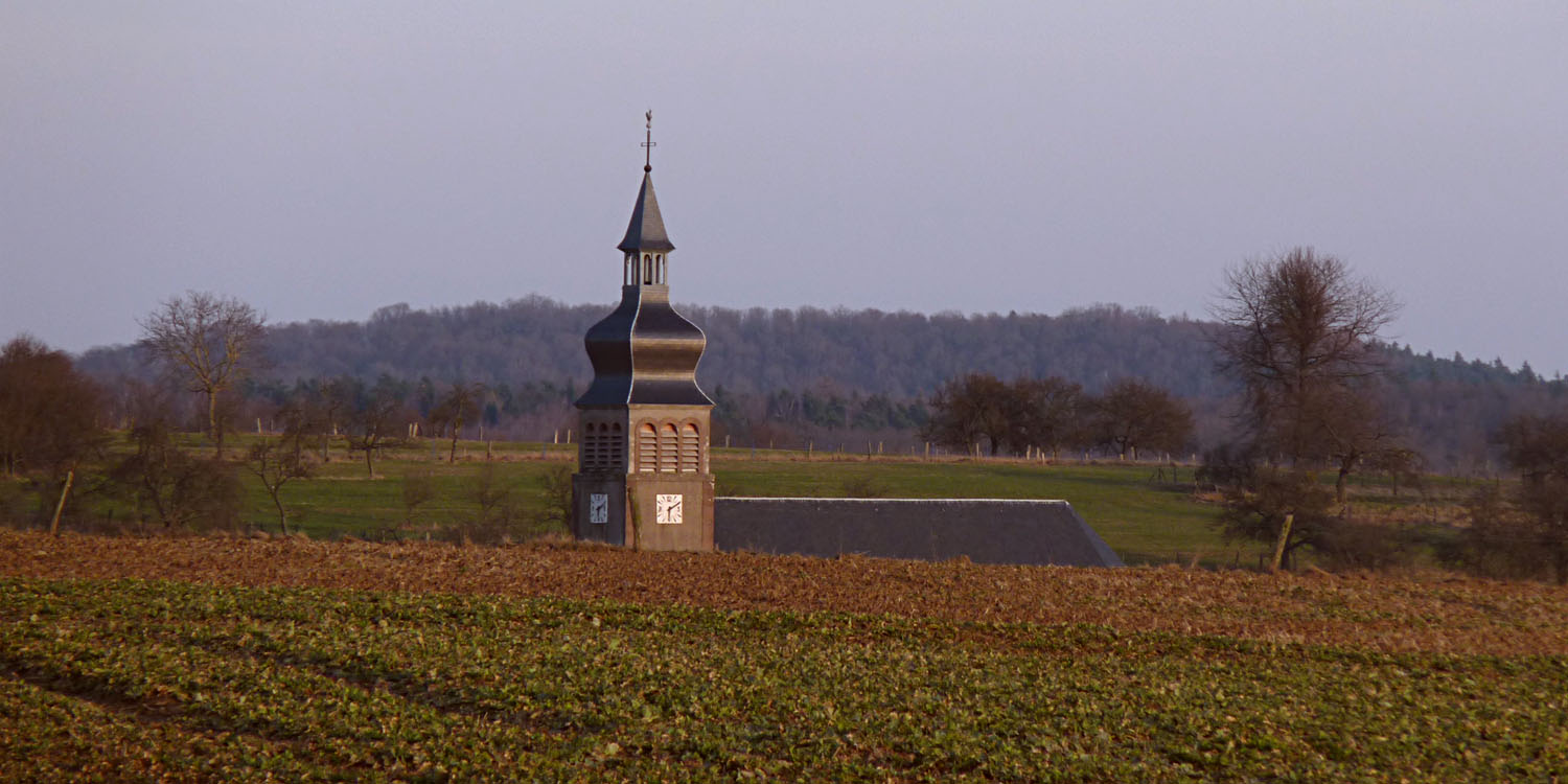 Dominant la masse des maisons couvertes de tuiles plates, l'église Saint-Wendelin dresse sa haute silhouette coiffée d'ardoise.