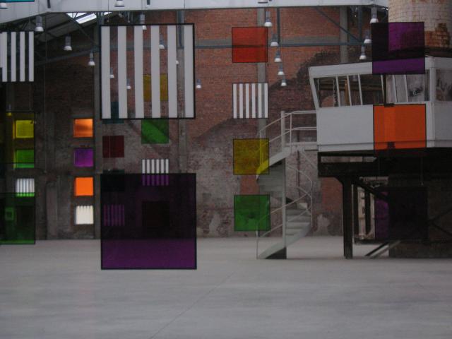 des pièces d'art contemporain. Dans l'immense halle