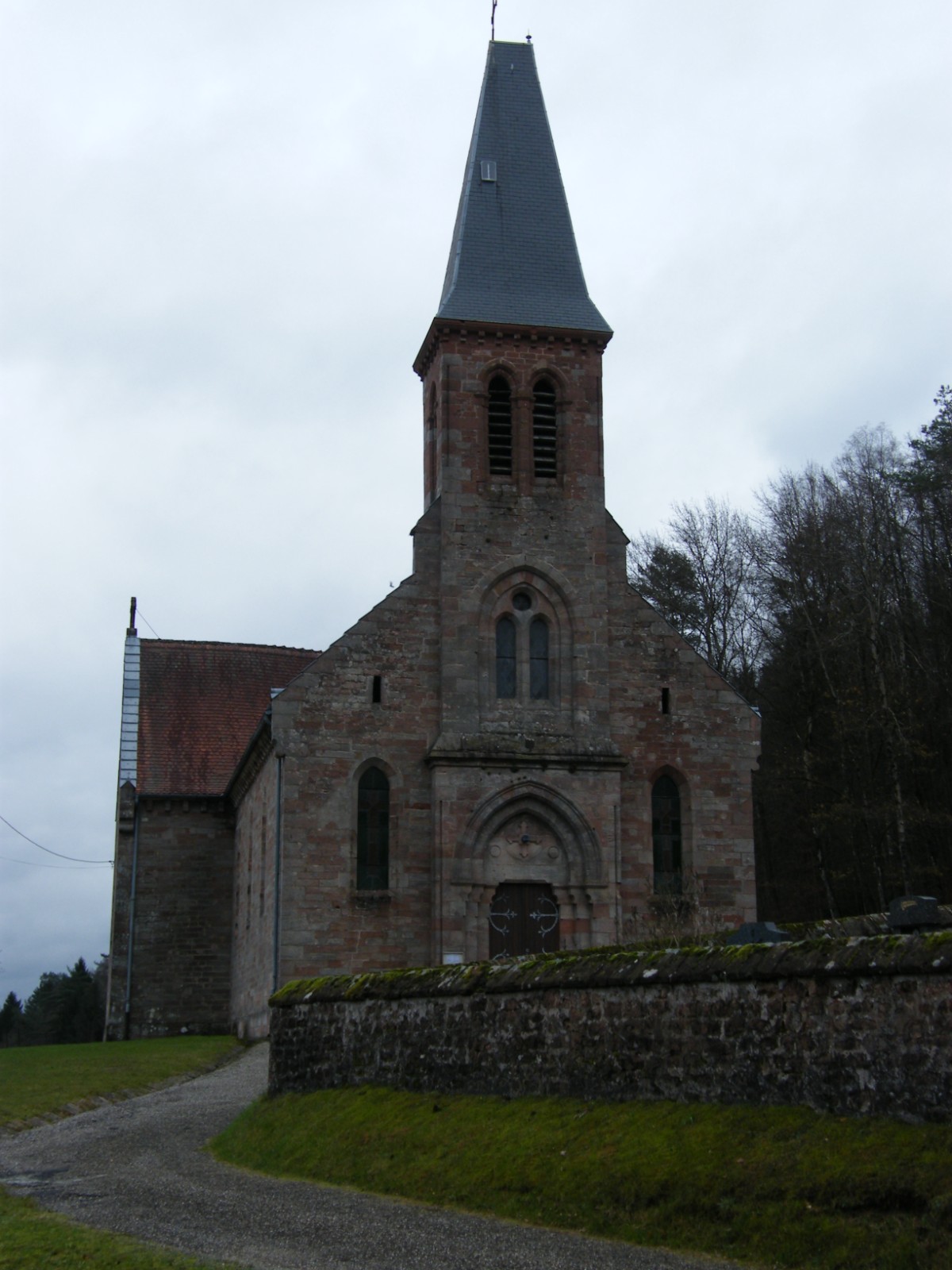 Une nouvelle église, dédiée elle aussi à saint Jacques le Majeur, fêté le 25 juillet, est érigée en 1869 sur le Langenberg, sous l'administration du chanoine Jean-Baptiste Manges. La pose de la première pierre a lieu le 7 juin 1869. Monsieur l'abbé Stengel, curé de Goetzenbruck, définiteur du canton de Bitche, procède à la bénédiction après une allocution parfaitement adaptée à la circonstance faite par monsieur l'abbé Krieg, curé de Saint-Louis-lès-Bitche. Sous la pierre angulaire, le procès-verbal de la cérémonie a été enfermé dans un petit coffret en étain : « Anno millessimo octin gentesimo sesagesimo noro die septima junii Pio Nono Pontifice Maximo, Napoleone tertio in Gallia imperatore, D.D. Paulo Giorgio Maria Dupont des Loges episcopo Metensi, Leone de Joanisis magistrale in Mouterhouse Joanne Baptiste Manges parciceo primanus et angelis Ecclesia langus lapris benedictas et impositus est : Lans Leo beatae Vargeni et S. Jacobo patrone. » Une foule nombreuse assistait pieusement à la cérémonie.