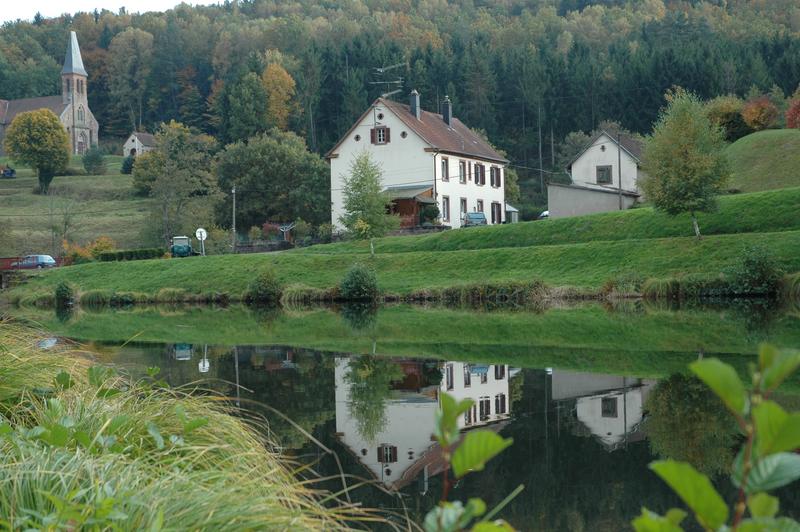 Au plus profond du pays couvert, le village de Mouterhouse, avec ses nombreux écarts égrenés le long des rivières, possède le plus vaste ban du pays de Bitche, couvrant une superficie de plus de 4 200 hectares. La petite localité se situe au confluent des ruisseaux de la Moderbach et du Breidenbach, dans la vallée de la Zinsel. Il est à six kilomètres de la gare de Bannstein et à douze kilomètres de Bitche. De nombreux petits étangs artificiels se succèdent dans la sinueuse vallée de la Zinsel du Nord et de son affluent, le Moderbach. Créés pour l'industrie métallurgique, qui se développe dans le secteur dès le début du XVIIe siècle mais peut-être, plus anciennement, pour alimenter des viviers à poissons et faire tourner les moulins à grain, ils s'étirent comme des chapelets. Le grand étang, déjà décrit en 1785 dans l'Atlas topographique du Pays de Bitche, est le plus vaste d'entre eux puisqu'il mesure pas moins d'un kilomètre de long. Il est agrandi jusqu'aux ruines du château situées au Kapellenhof et est propriété de la famille de Dietrich jusqu'à une date récente.