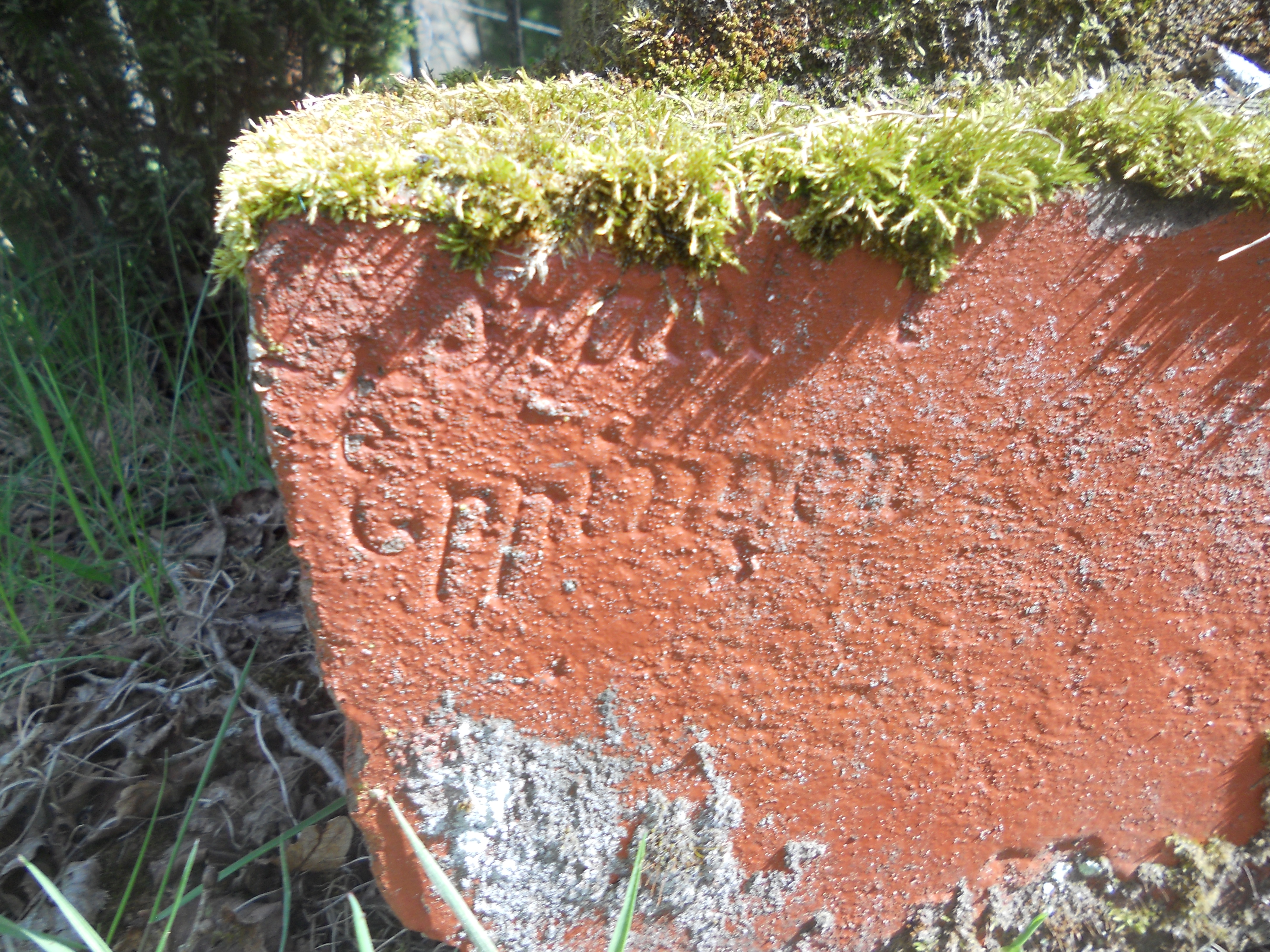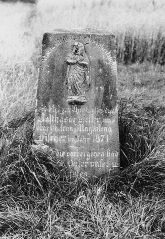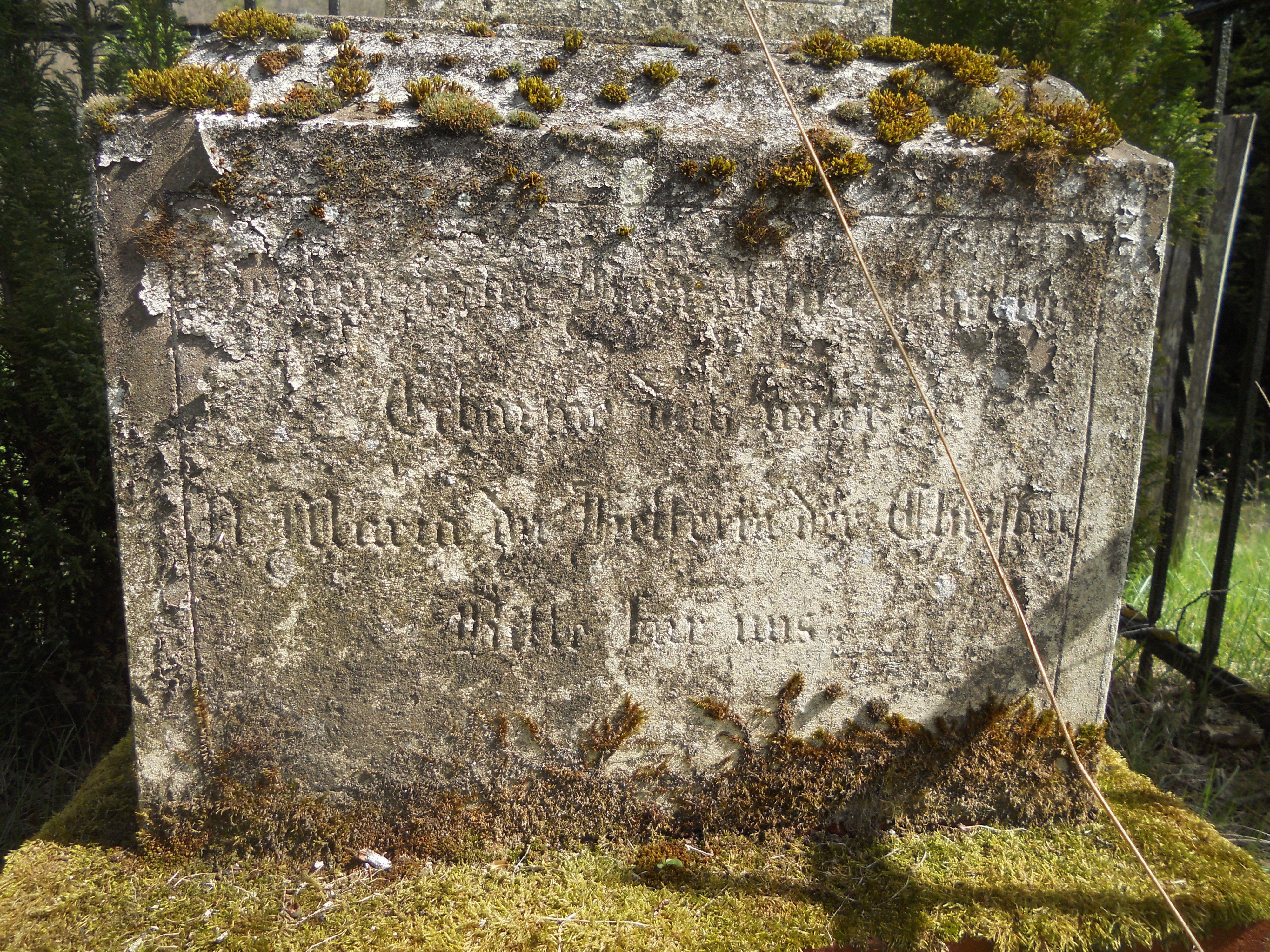 entourée d'un grillage en fer forgé. Une inscription en allemand est gravée sur le