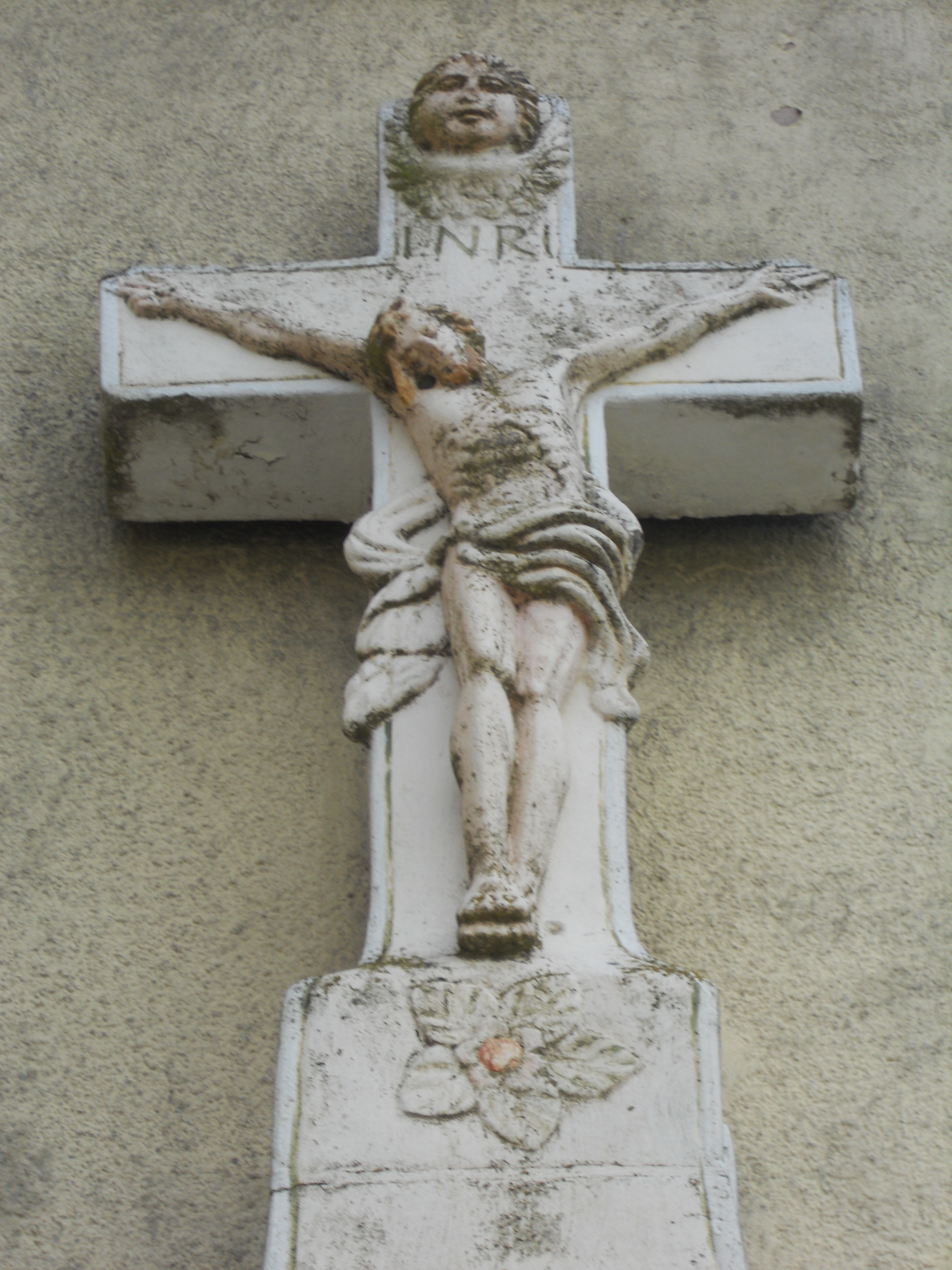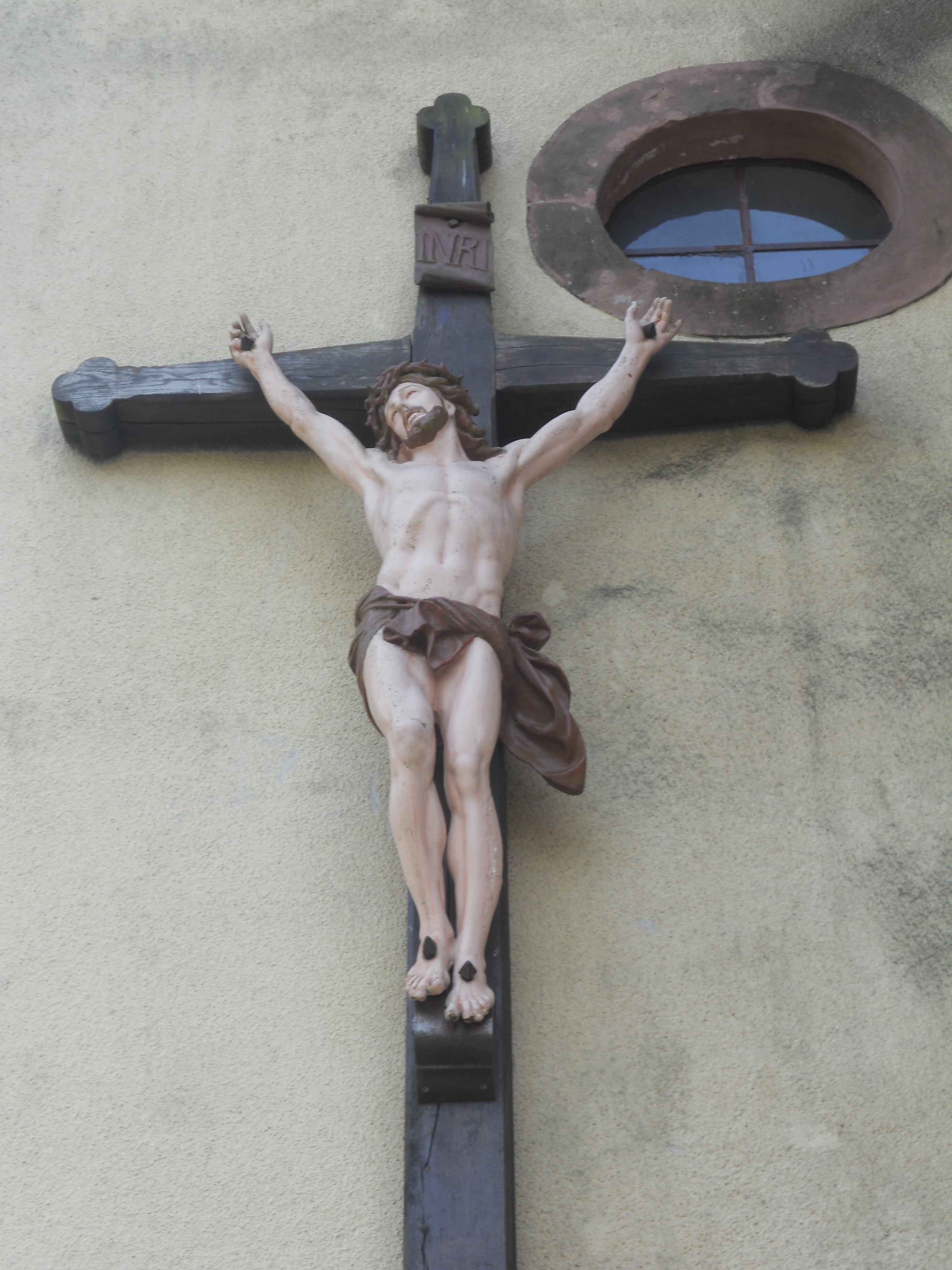 sur le croisillon, surmonté des initiales INRI inscrites non