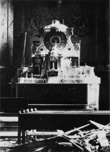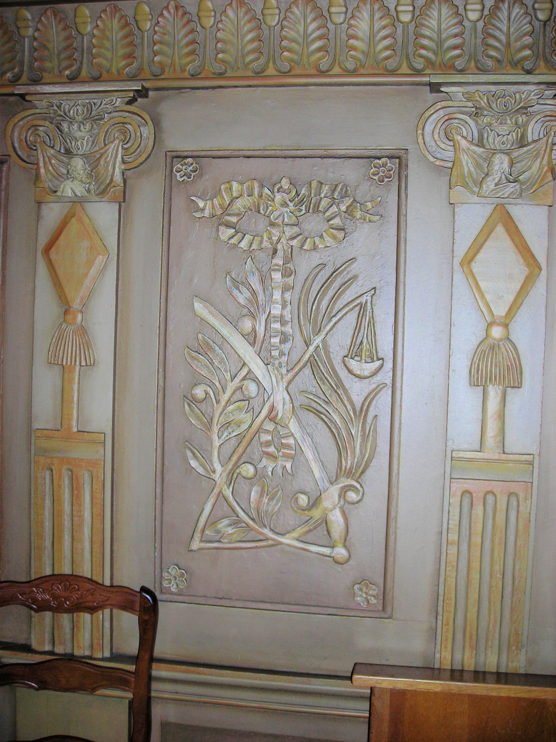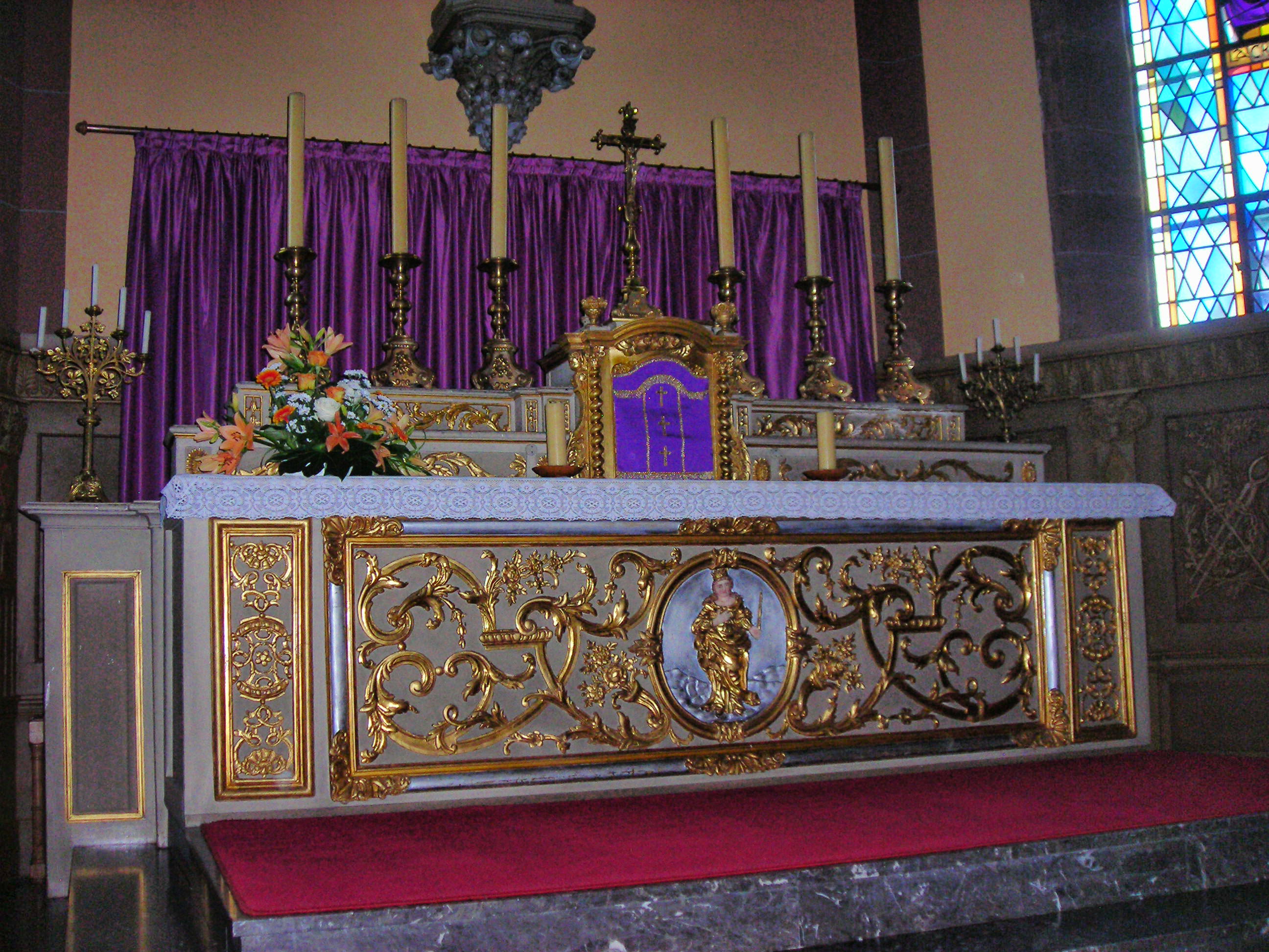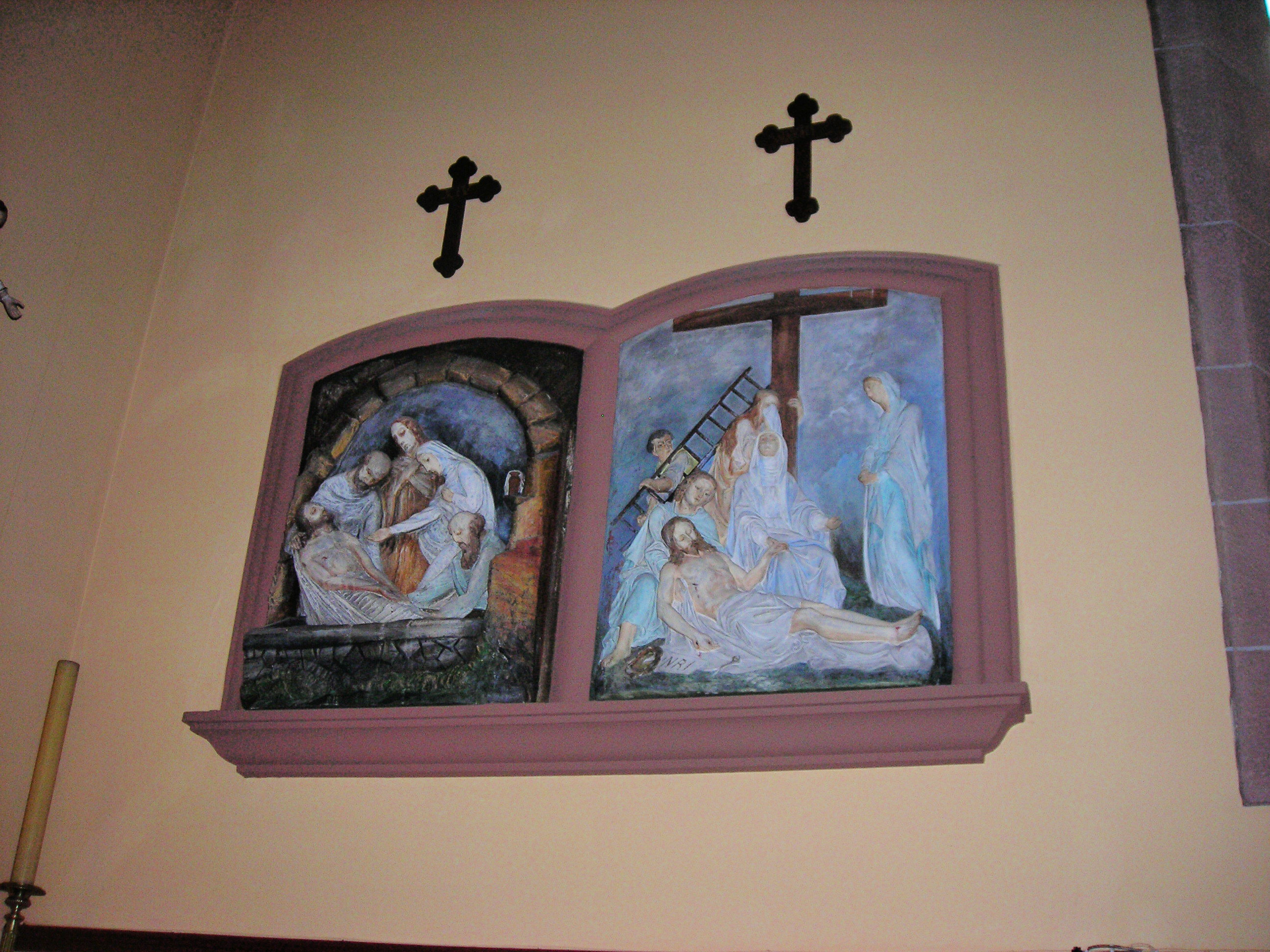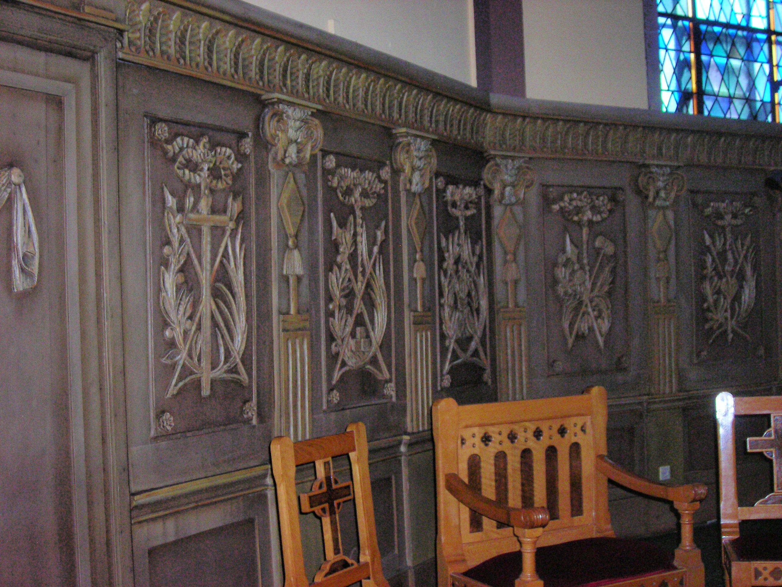 Des lambris en bois peint, occupant tout le pourtour du chœur, sont sans doute installés peu après 1774, date de la reconstruction de l'église. Restaurés en même temps que l'église après la dernière guerre, ils représentent les chutes d'instruments de la Passion du Seigneur Jésus-Christ, mêlés à des palmes et à des branches de laurier (le tombeau ouvert, des lances et une éponge, la Sainte-Tunique, des dés, un marteau et une paire de tenailles, un pic et une bêche, la couronne d'épines, ainsi qu'un calice et une hostie rayonnante).