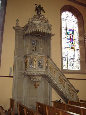 La paroisse possède plusieurs belles pièces d'orfèvrerie. Sobre dans ses formes et pauvre dans le matériau, un ostensoir en laiton doré daté du XVIIIe siècle est conservé dans la sacristie. Une haute tige à nœud piriforme posée sur un pied circulaire supporte une lunette avec à l'intérieur un croissant eucharistique destiné à présenter la Sainte Hostie. L'église possède aussi un calice en laiton et argent dorés de A. Laroche, de Strasbourg, datant de la première moitié du XIXe siècle et un calice en argent de J.-G. Pick, reçu maître-orfèvre à Strasbourg en 1739, avec coupe remplacée au milieu du XIXe siècle. Un calice en verre soufflé gravé, datant du XVIIIe siècle, est très probablement l'œuvre d'une verrerie du Bitscherland. Dans un état de conservation excellent, il figure le monogramme de Notre-Seigneur, IHS, ainsi qu'un symbole crucifère.