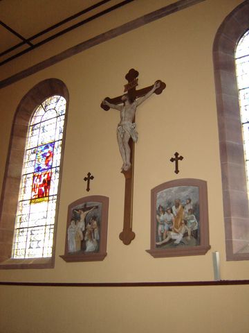 Un ensemble de verrières est réalisé par la maison Ott frères de Strasbourg. Les vitraux du chœur figurent la Sainte-Cène et la Crucifixion de Notre-Seigneur. Ceux de la nef, sur fond à décor géométrique, représentent au sud saint Léon IX, le Bon Semeur, les pélerins d'Emmaüs, ainsi que le riche et Lazare ; au nord, on retrouve saint Rémi, patron de la paroisse, le Bon Pasteur, les ouvriers de la vigne et le Pharisien.