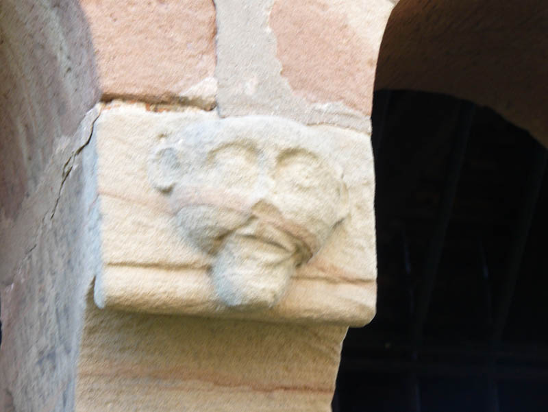 arc, deux visages grotesques représentant très vraisemblablement des têtes
