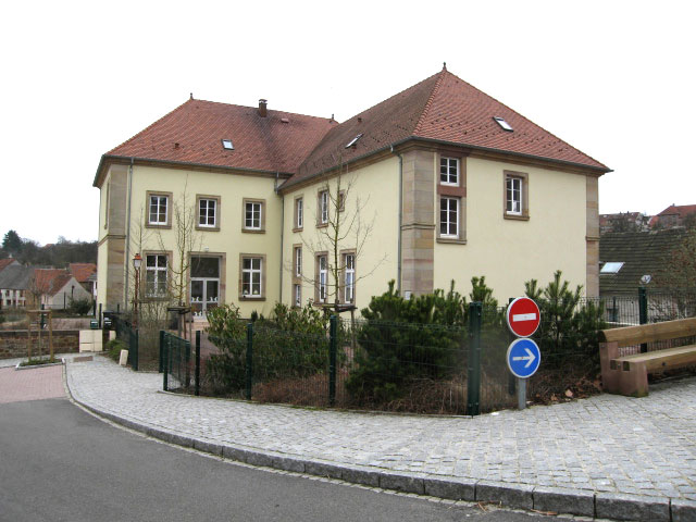 Le linteau de la maison d'un maréchal-ferrant, située 9 rue du Général-de-Gaulle et construite à la fin du XVIIIe siècle ou au début du XIXe siècle. Le linteau est dû à l'un des ateliers du village voisin de Rahling. Entre deux grosses fleurs sont figurés ses instruments (rogne-pief, boutoir, tenailles et marteau ainsi que le fer à cheval, symbole de la profession.