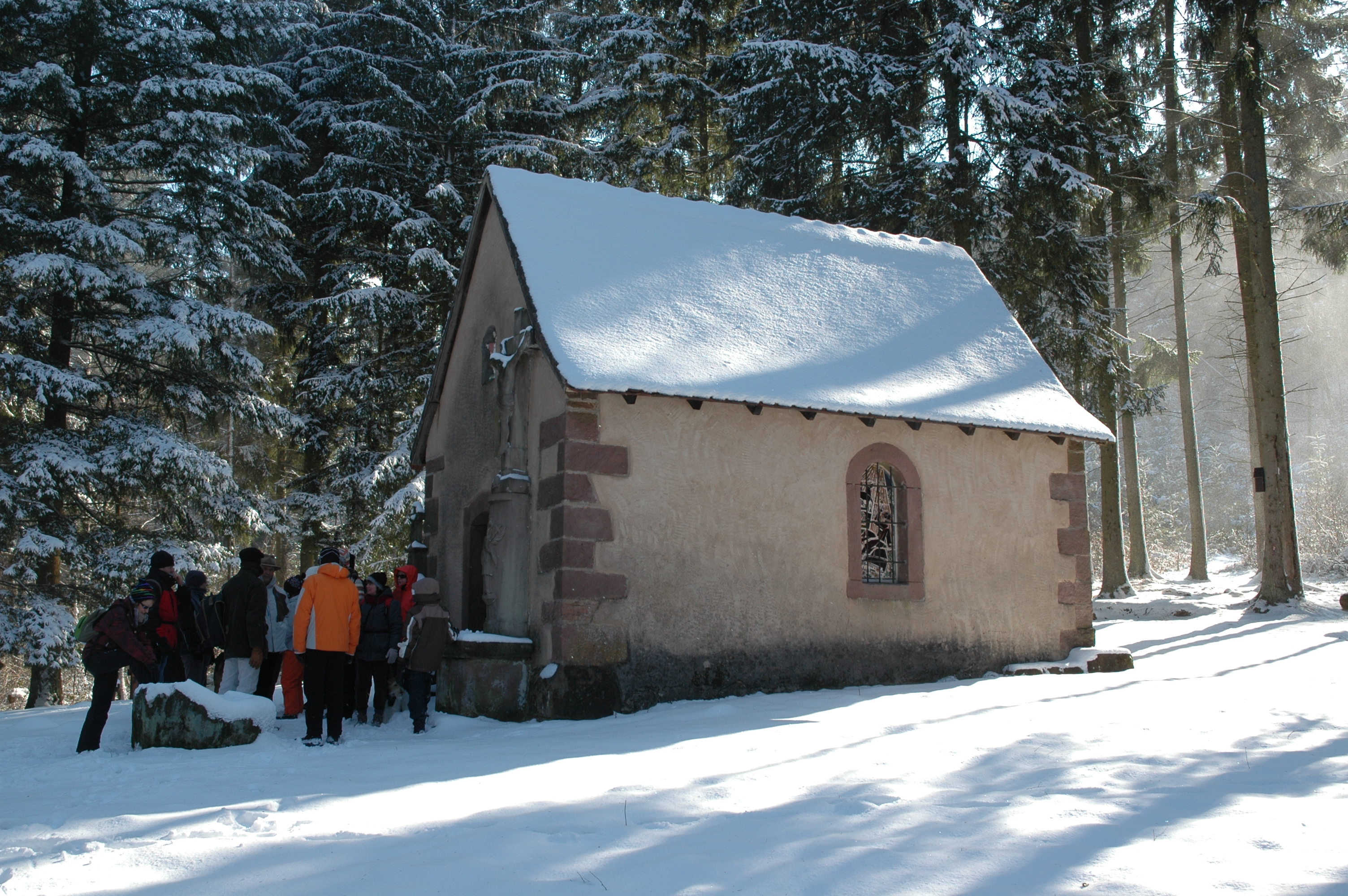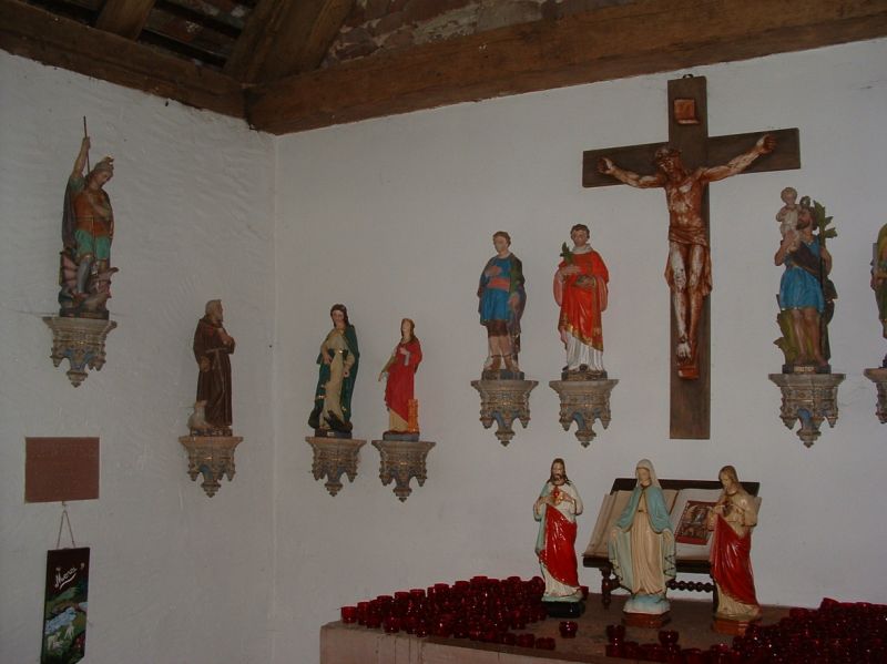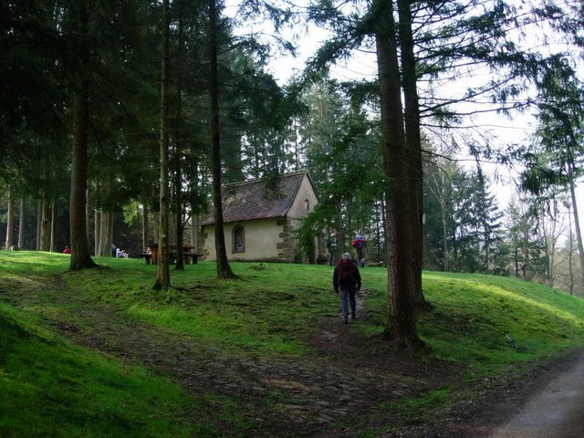 Au lieu-dit Oligmühle (le moulin à huile), en bordure de la route de Montbronn, un calvaire est élevé au XVIIIe ou au début du XIXe siècles. Un grès à patine sombre et une taille sèche sont compensés par l'élégance des statues en ronde bosse de la Très Sainte Vierge Marie et de saint Jean. Sur le fût, exceptionnellement large, figure la Sainte Famille en marche, un thème assez fréquent dans le Bitscherland. Le Christ en Croix est lui aussi bien venu, avec son perizonium aux lours plis étagés et sa longue chevelure ondulée.