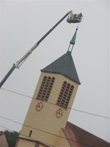 érigé en paroisse autonome du nouvel archiprêtré de Volmunster, qui est calqué sur le canton. Dédiée à l'Exaltation de la Sainte-Croix, l'église