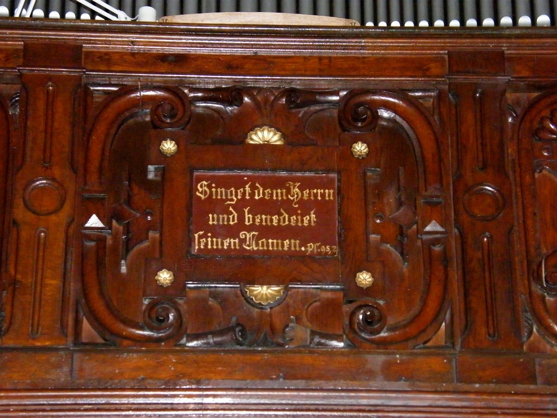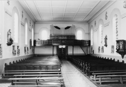 Un bel orgue, œuvre de Willy Meurer, est installé en 1957 dans l'édifice. Possédant deux claviers de cinquante-six notes, un pédalier de trente notes et des transmissions électro-pneumatiques, l'instrument est restauré en 1998 par Bruno Dillenseger. Une plaque est apposée à la rambarde de la tribune : elle indique une citation biblique du livre des Psaumes, qui invite à louer le Seigneur. L'inscription en allemand est la suivante :« Singet dem Herrn und benedeiet Seinen Namen » (Ps 95,2), ce qui signifie : Chantez pour le Seigneur et bénissez Son Nom.