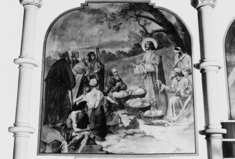 Représentant des scènes de la vie publique du Christ, un ensemble de quatre peintures murales à l'huile est réalisé vers 1921 dans le chœur ; la première peinture est entièrement refaite en 1950-1951 par l'atelier Jaeg de Strasbourg, tandis que les trois autres sont restaurées à la même époque. Elles représentent quatre scènes bibliques, que sont Notre-Seigneur avec les Docteurs de la Loi (mur Nord, à gauche), les Noces de Cana (mur Nord, à droite), la multiplication des pains (mur Sud à gauche), ainsi que la Résurrection (mur Sud, à droite). Il s'agit de copies d'oeuvres du peintre Anselm Feuerbach (1829-1880), exécutées par un artiste sarrois (renseignements communiqués en 1981 par le curé de Walschbronn, desservant la paroisse, lors de l'inventaire du patrimoine).