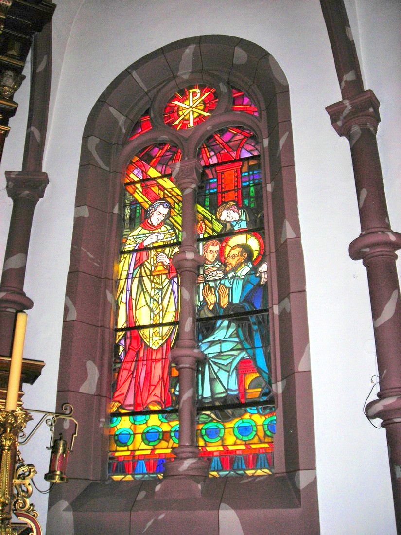 Une nouvelle verrière est installée en 1958 par l'atelier Ott Frères de Strasbourg, en remplacement des vitraux soufflés lors des bombardements de la seconde guerre mondiale. Elle représente dans le chœur la vie de saint Vincent de Paul, saint patron de la paroisse, ainsi que les figures bibliques des Douze saints Apôtres dans la nef.